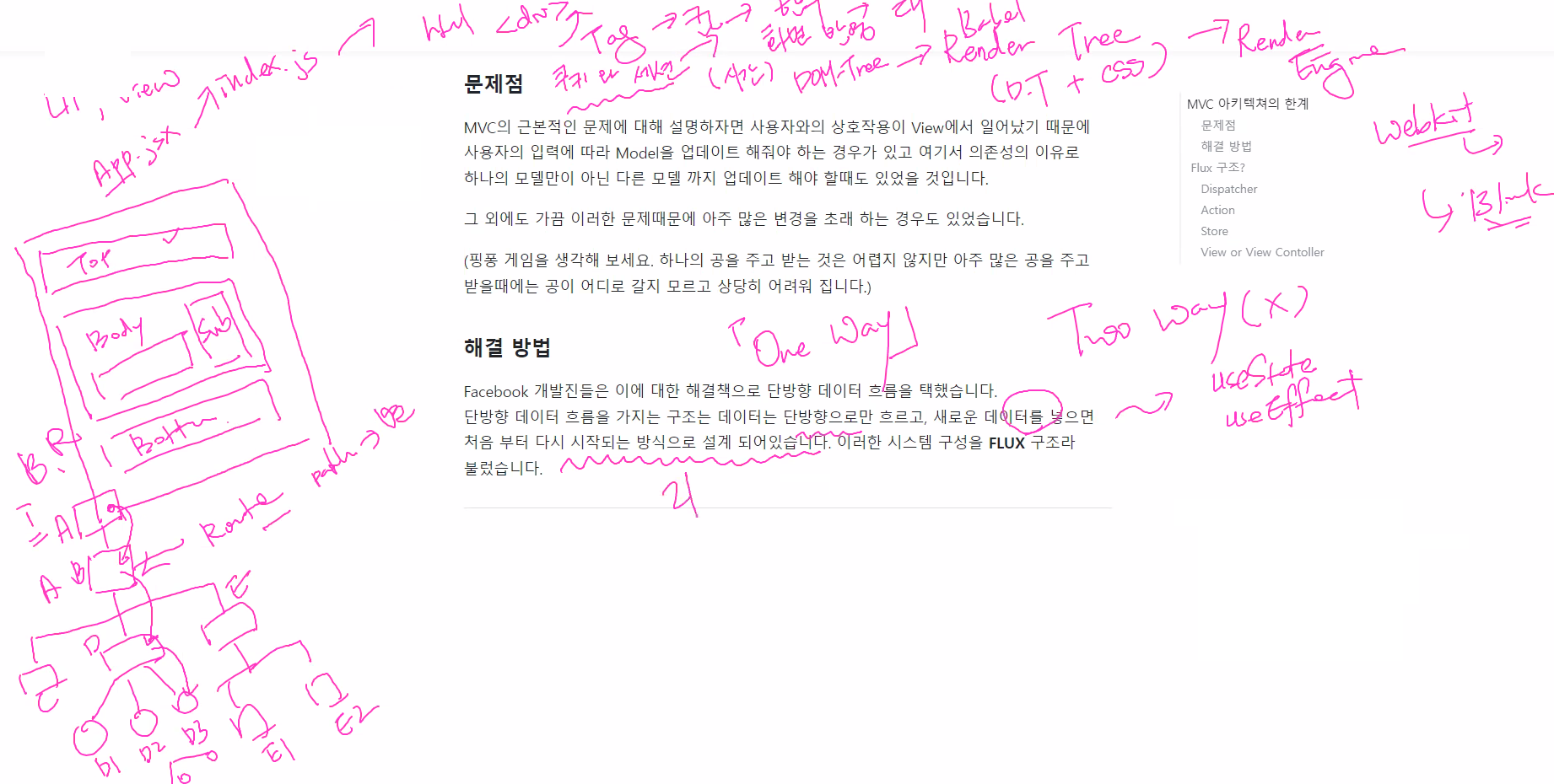 양방향 데이터 바인딩 → 복잡도증가 → 리덕스와 같이 단방향(One Way) 방식 사용