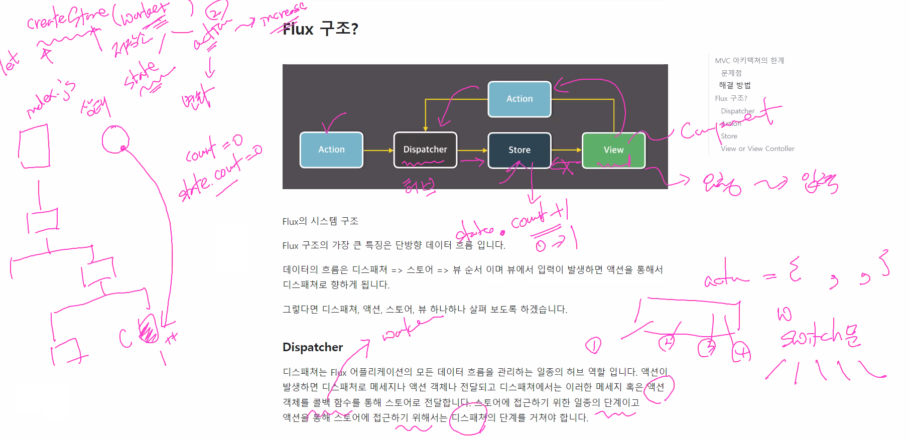 또 다른 입력(요청) 발생 → Action 발생시키고 다시 Dispatcher로 간다