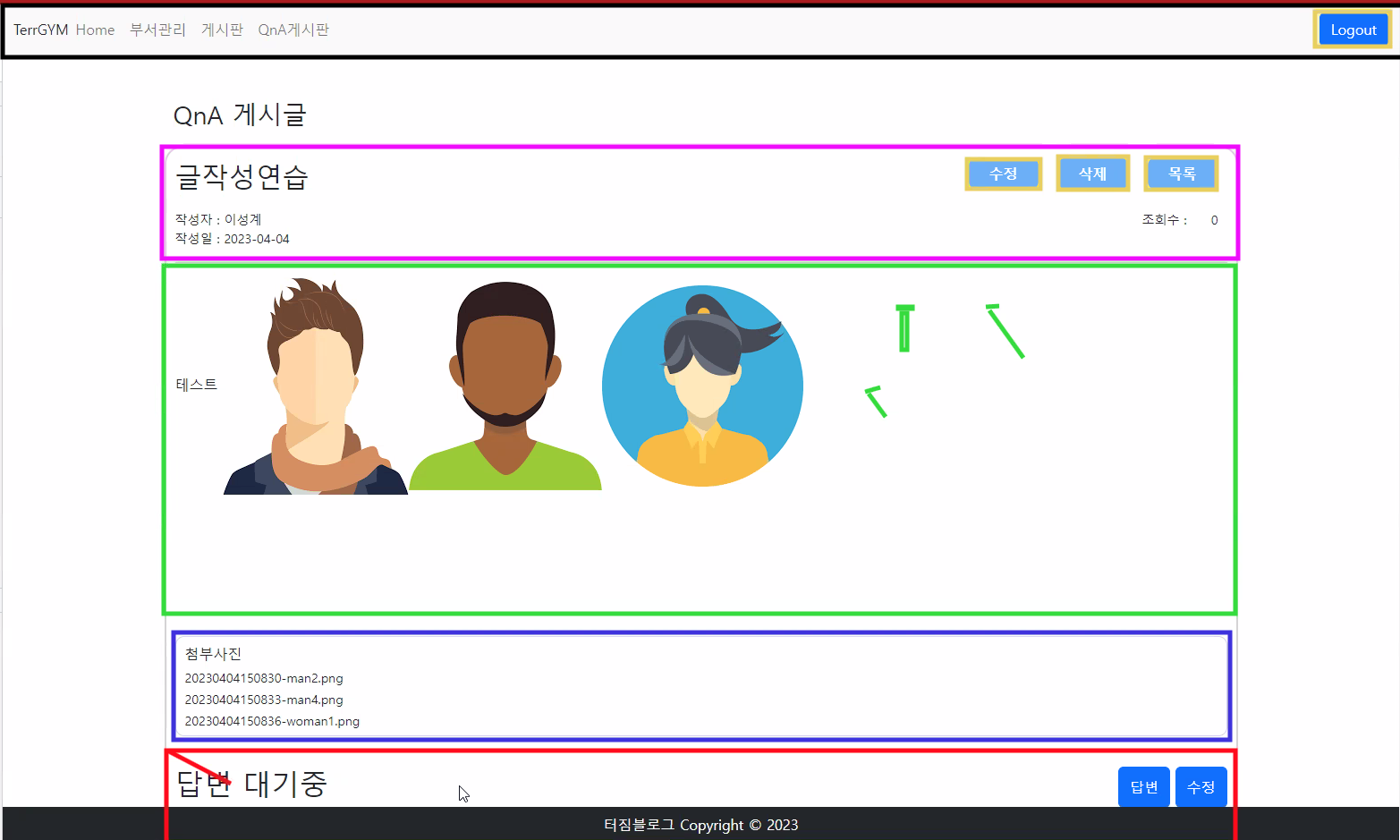 RepleBoardHeader → 수정, 삭제, 목록버튼