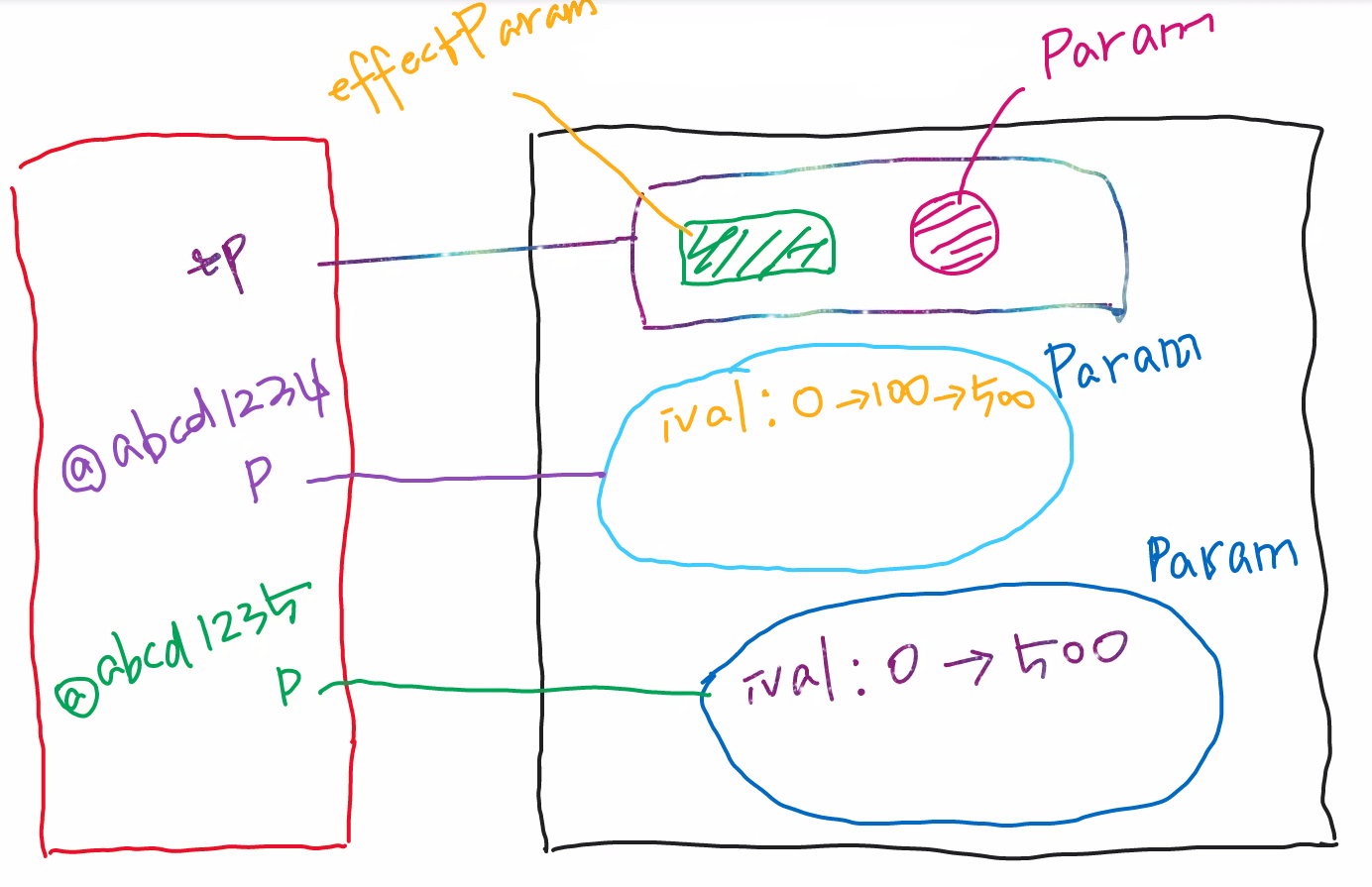 void effectParam(Param p) { // 메소드의 파라미터 자리(괄호 안)는 지역변수, Param p선언(초기화, 생성x), p는 원본주소번지 @abcd1234