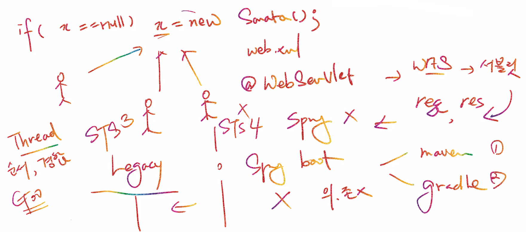 서블릿은 싱글톤으로 관리됨(WAS가 관리) → web.xml 혹은 @WebServlet 해야 함(req, res를 관리받는 것)